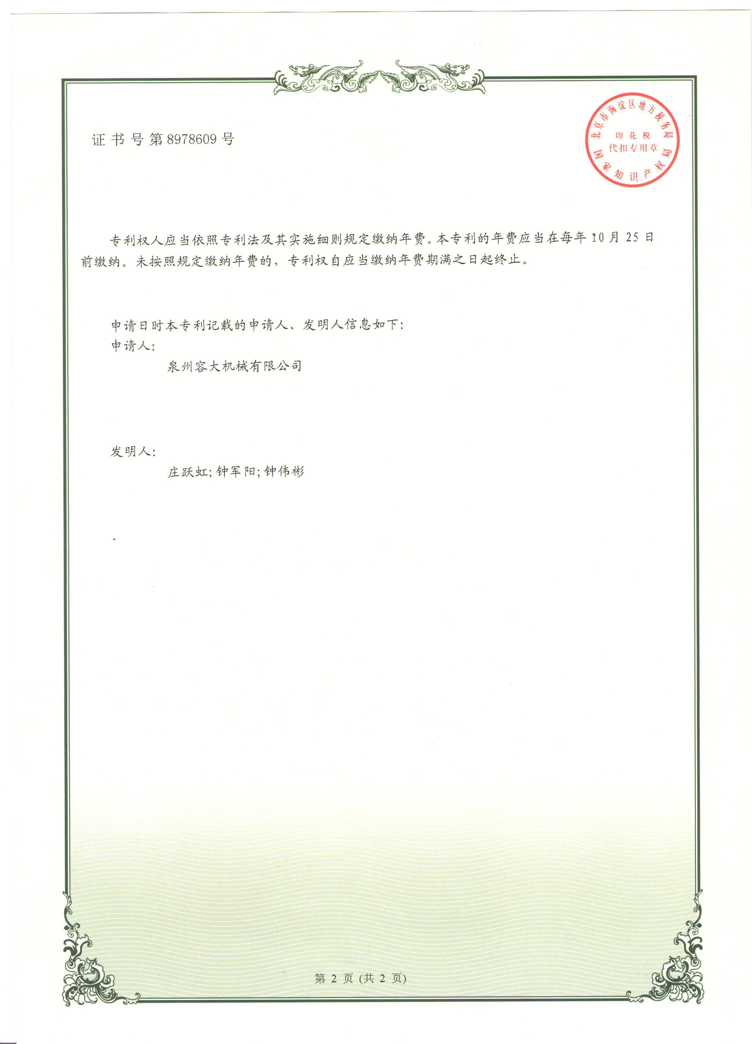 您的位置: 泉州容大機(jī)械有限公司 > 專利證書(shū) > 多功能修整機(jī)